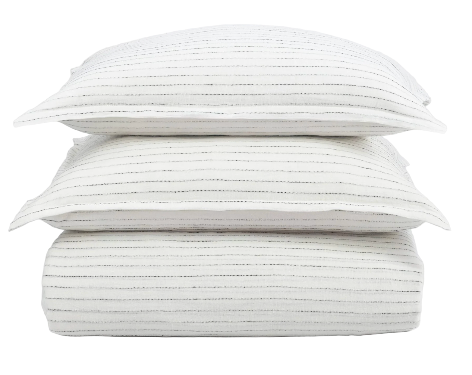 A new staple, this duvet cover is understated enough to be a solid, yet boasts a touch of interest as a subtle textural pin stripe is woven horizontally throughout.